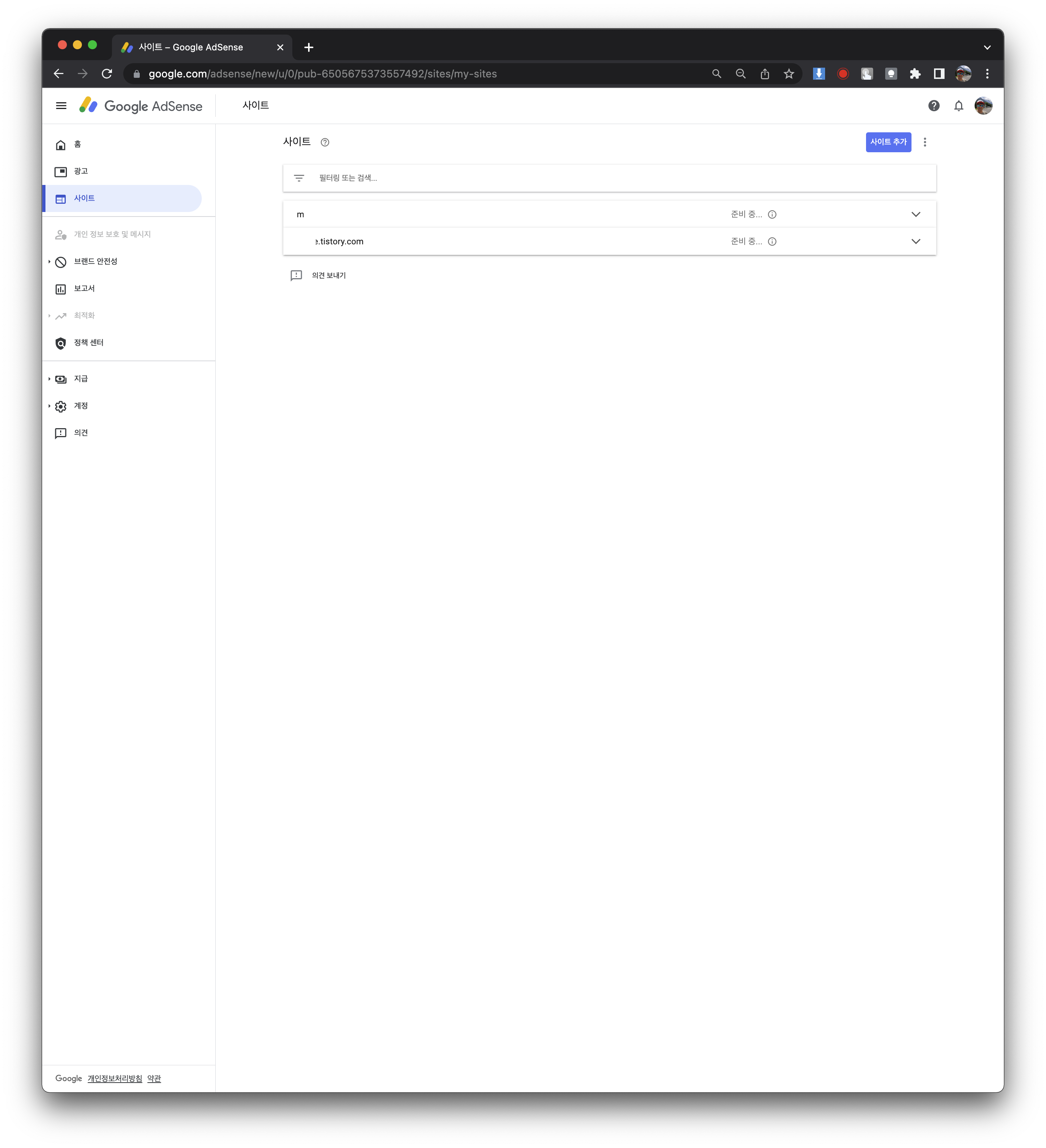 사이트를 삭제했다가 다시 제출하지 않도록 하세요. 이로 인해 프로세스가 지연될 수 있습니다.