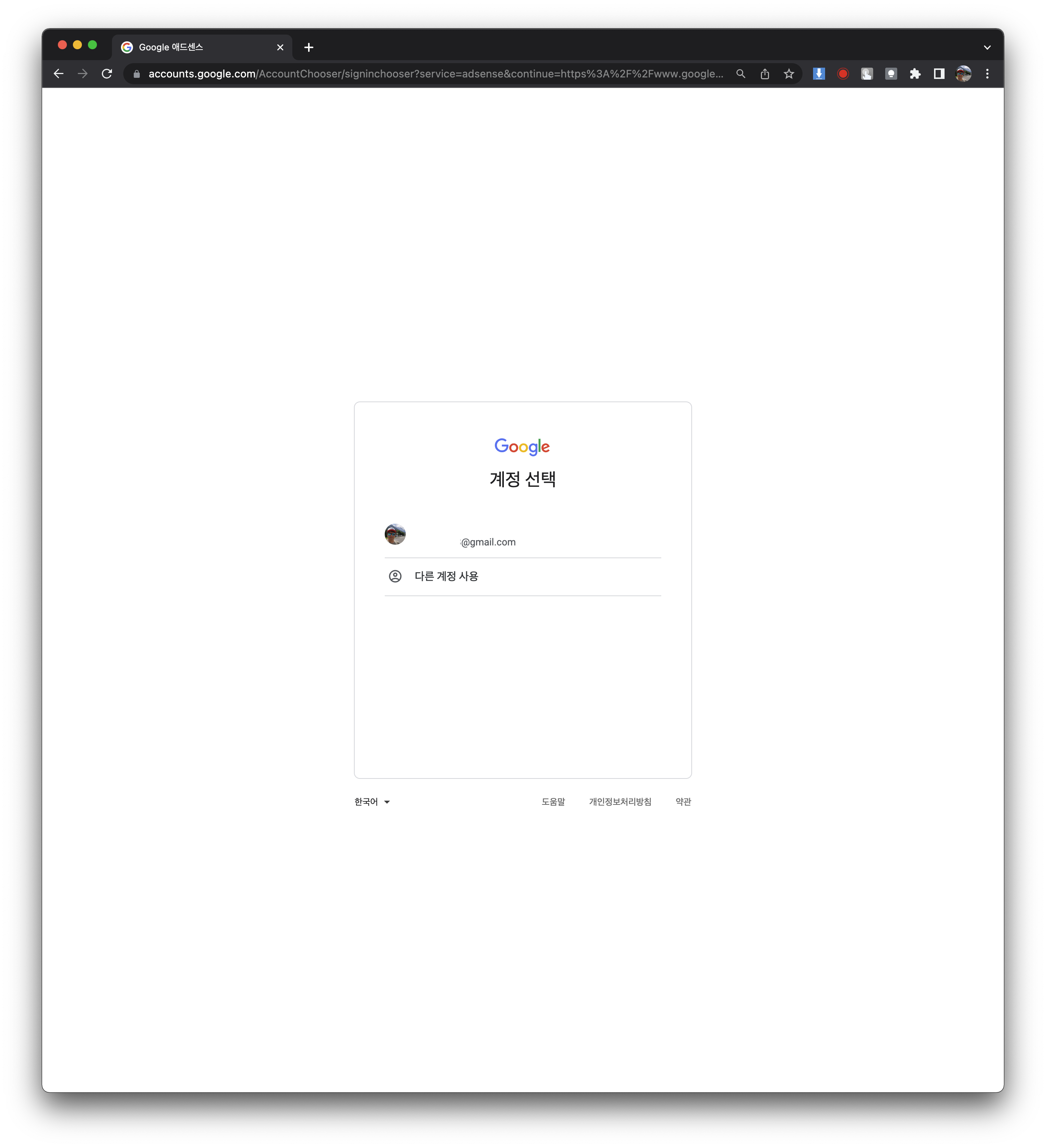 2. 구글 애드센스를 사용할 계정 선택하기